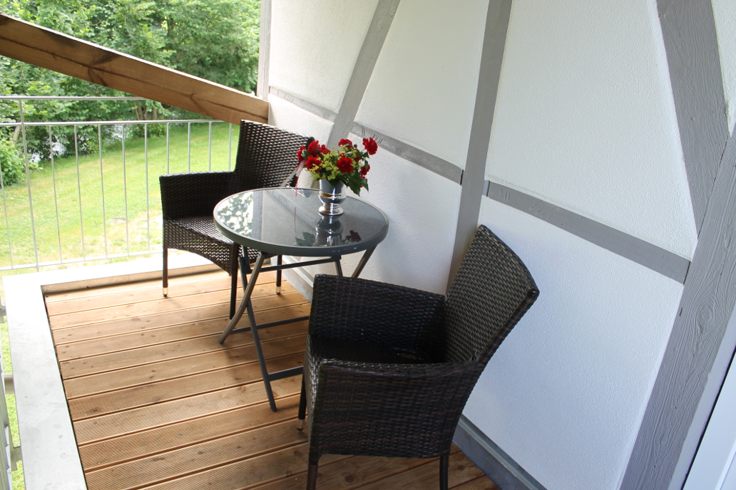 Unsere Ferienwohnung „Franz“ liegt ruhig und befindet sich im EG, sie ist 57 m² groß und hat zwei Balkone.